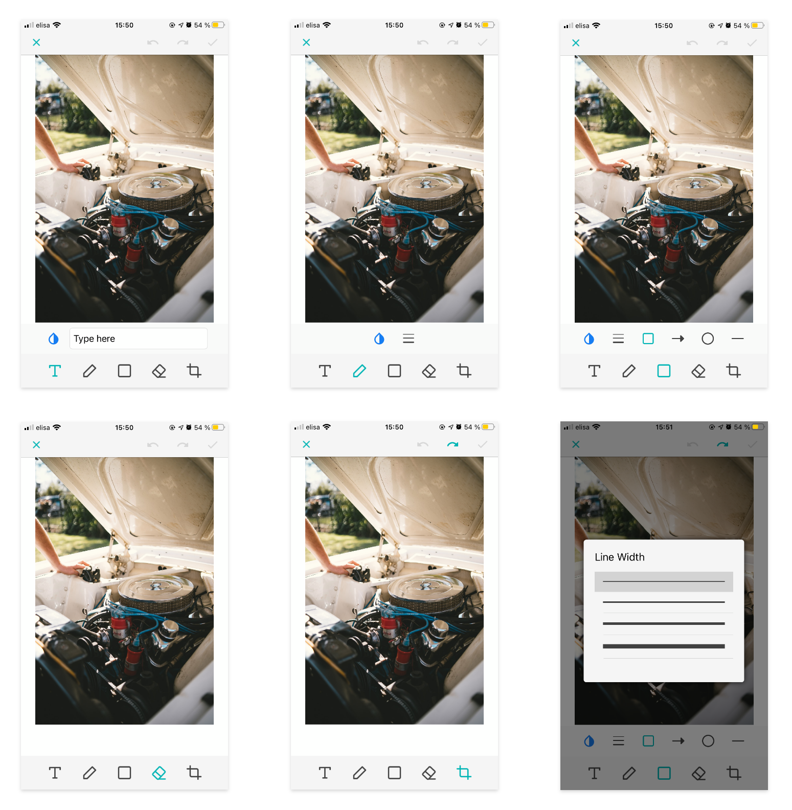 * Tap on **Edit** to start annotating, or the **Trash Bin** to delete the image.