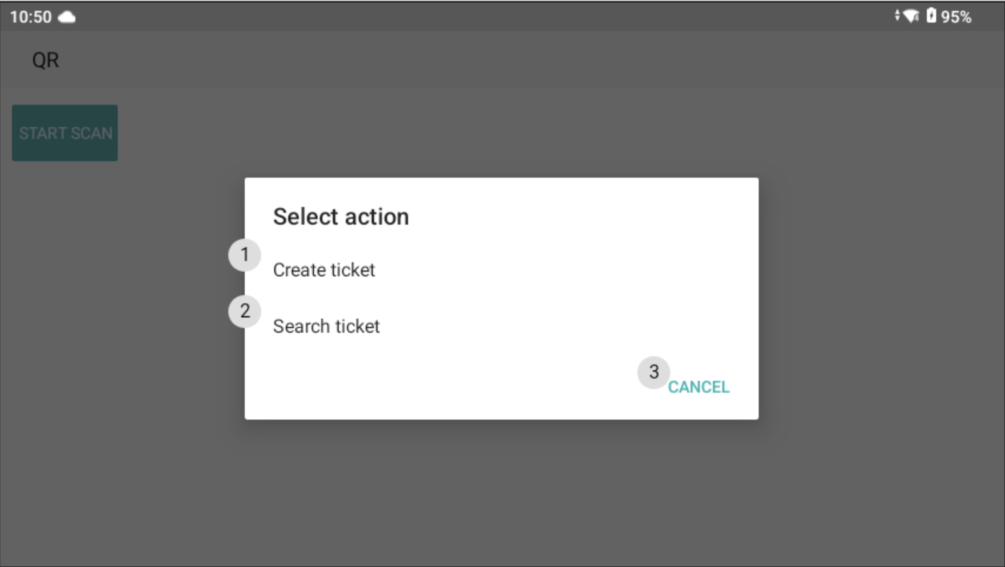 By using the voice command **`QR`** in the Ticket list view, you are taken to a view where you can scan a QR code with your **RealWear Device**. After scanning the code XReach can use the data from that code to either create a new ticket or to search for existing tickets: