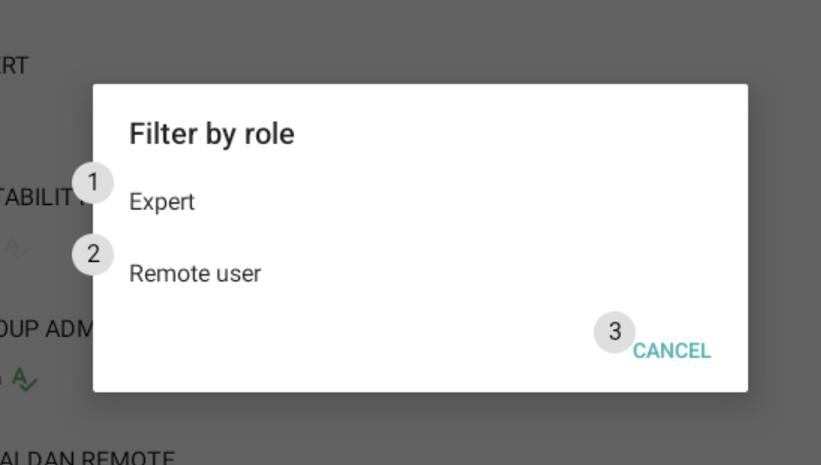 Changing the ticket owner can be done similarly to Assigning the Expert by choosing **Change Owner** once the **Ticket Overhead Menu** has been opened. Commands **`Search`** and **`Filter`** work as expected, and after choosing to filter the users a popup with possible user roles is presented. The role to filter by can then be chosen by command **`Select item <number>`**.