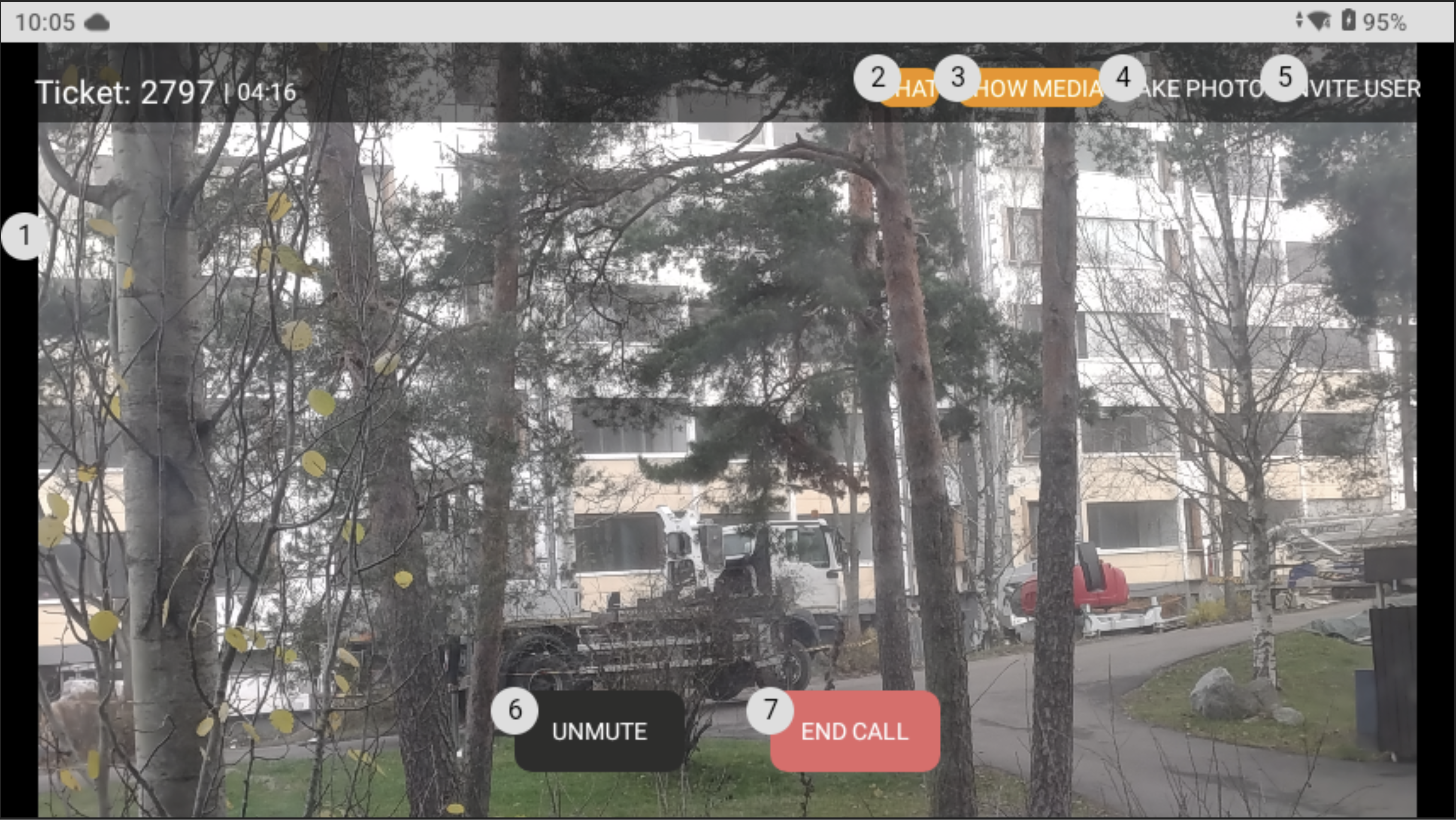 <figure><img src="https://4219527844-files.gitbook.io/~/files/v0/b/gitbook-x-prod.appspot.com/o/spaces%2F-MMPaHg7zC9PGFTMjK1L%2Fuploads%2FMaN2NPYeOw5dbLAVieE4%2Fkuva.png?alt=media&#x26;token=b5301386-b853-46f9-a3b5-5b3cf7401fe0" alt=""><figcaption><p>General call view. Orange buttons show that chat and media tabs have new items</p></figcaption></figure>
