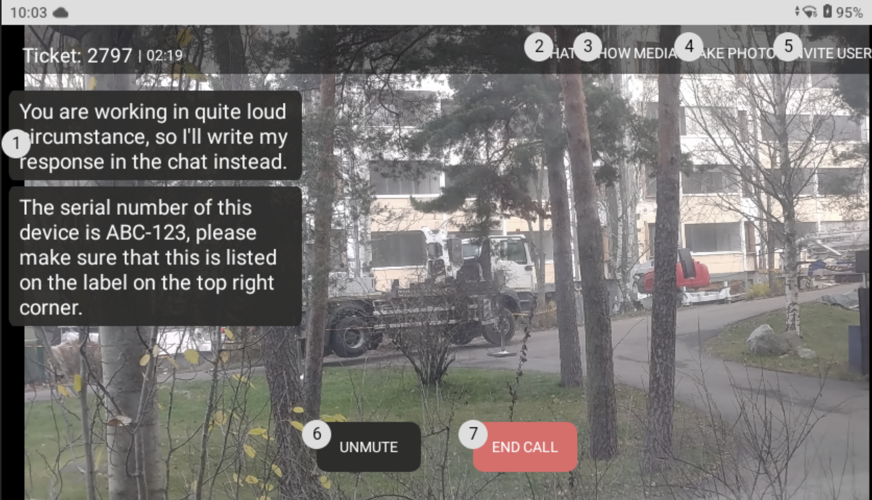In order to increase the usability of the Create / Edit Ticket view with RealWear, you can simply speak the title of the textfield you wish to fill. For instance, say **`Description`** and you are editing the **Description** textfield. Any field that does not have a spoken word available to it, will be shown with the circled numbers, and then you can say, for instance, **`Select Item 5`** to select the fifth item. If you wish to see more textfields (and your environment has more textfields configured), say **`Page Down`**.